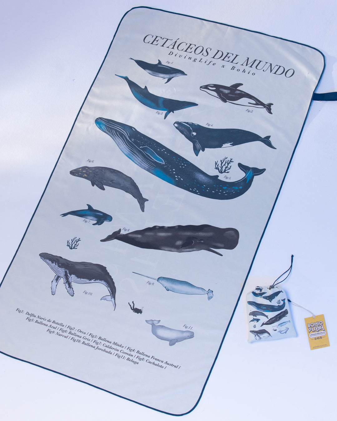 Llévate el océano contigo. Esta toalla de microfibra es ligera, de secado rápido y presenta un diseño doble faz que resalta la belleza y diversidad marina del Pacífico.